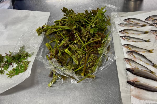今回は、森の旬の山菜や、清流の恵のお魚を頂きました。